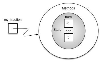 In Python, as well as in any other object-oriented programming language, we define a class to be a description of what the data look like (the state) and what the data can do (the behavior).
