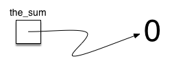The assignment statement the_sum = 0 creates a variable and lets it hold the reference to the data object 0.