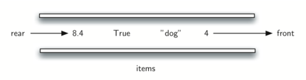 Python¶The implementation assumes that the rear is at position 0 in the list. This allows us to use the insert() function on lists to add new elements to the rear of the queue. The pop() operation can be used to remove the front element. Recall that this also means that enqueue will be $O(n)$ and dequeue will be $O(1)$.